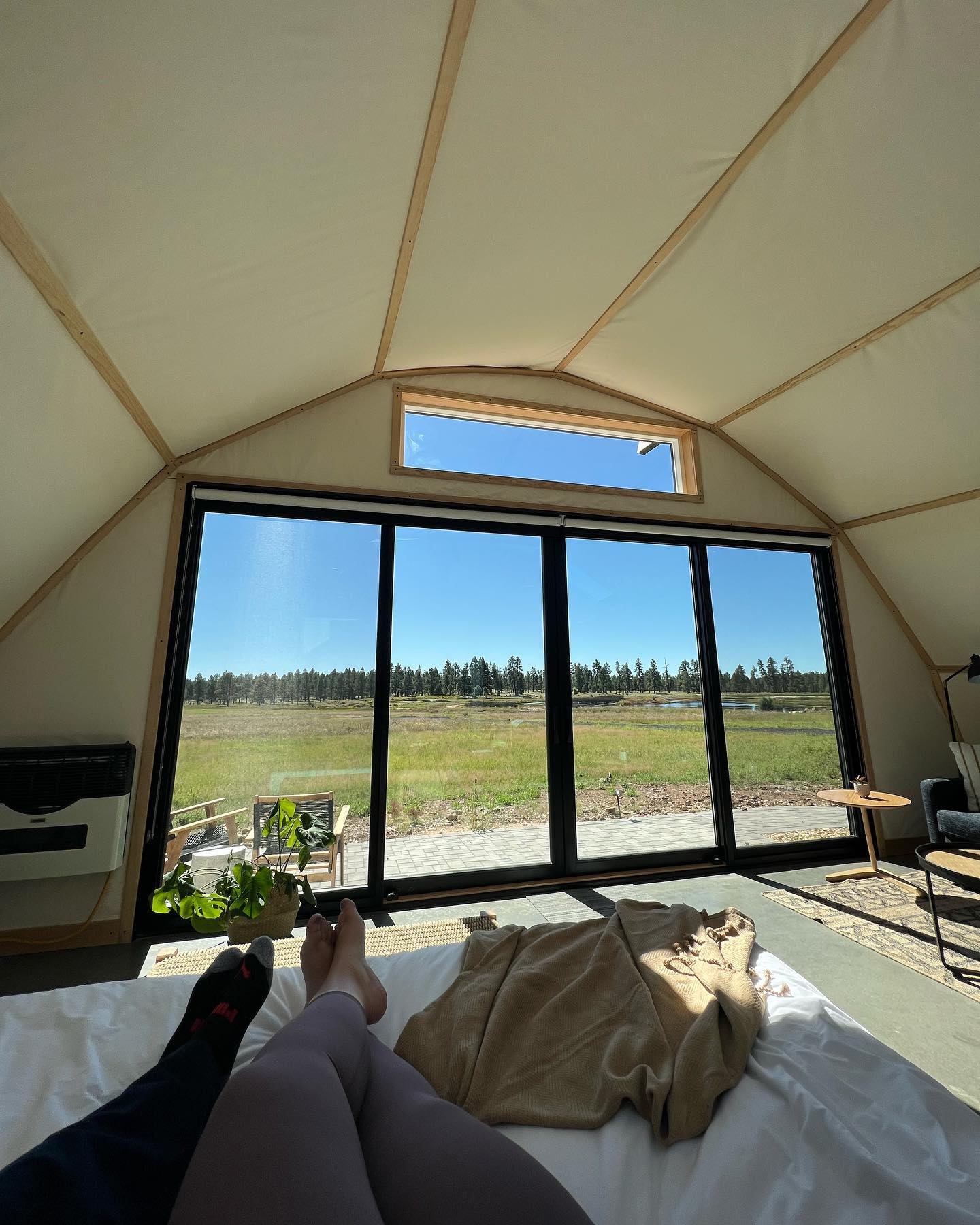 Experience luxury glamping with panoramic views, king-sized beds, and private patios at Backland Arizona, where your stay supports a noble cause. Immerse yourself in the untouched beauty of Arizona’s wilderness with Backland’s luxury glamping, featuring star-gazing skylights and exclusive amenities, all while contributing to a good cause. Backland Luxury Camping in Arizona offers an unparalleled glamping experience set on 160 acres of private land, surrounded by national forests and the dark, star-filled skies. This eco-friendly resort near Williams, Arizona, provides guests with the unique opportunity to enjoy the great outdoors without sacrificing comfort. Each of the 10 luxury tents boasts king-sized beds, luxury linens, giant panoramic windows, and an en-suite bathroom, ensuring privacy, comfort, and a connection with nature. The highlight is the Grand Sky Suite, with a 16-foot window over the bed, allowing guests to sleep under a blanket of stars. Guests can enjoy complimentary breakfast, gourmet meals, and massages amidst the ponderosa pines, enhancing the relaxation and connection with nature. The resort also offers walking trails, a pond, volleyball court, and gardens that contribute to the eco-friendly mission. The location is perfect for exploring nearby natural wonders, including the Grand Canyon, Sycamore Falls, and Walnut Canyon National Monument. By staying at Backland, guests directly support Heal, a nonprofit aiding refugee families, making this not only a luxurious but also a meaningful retreat.