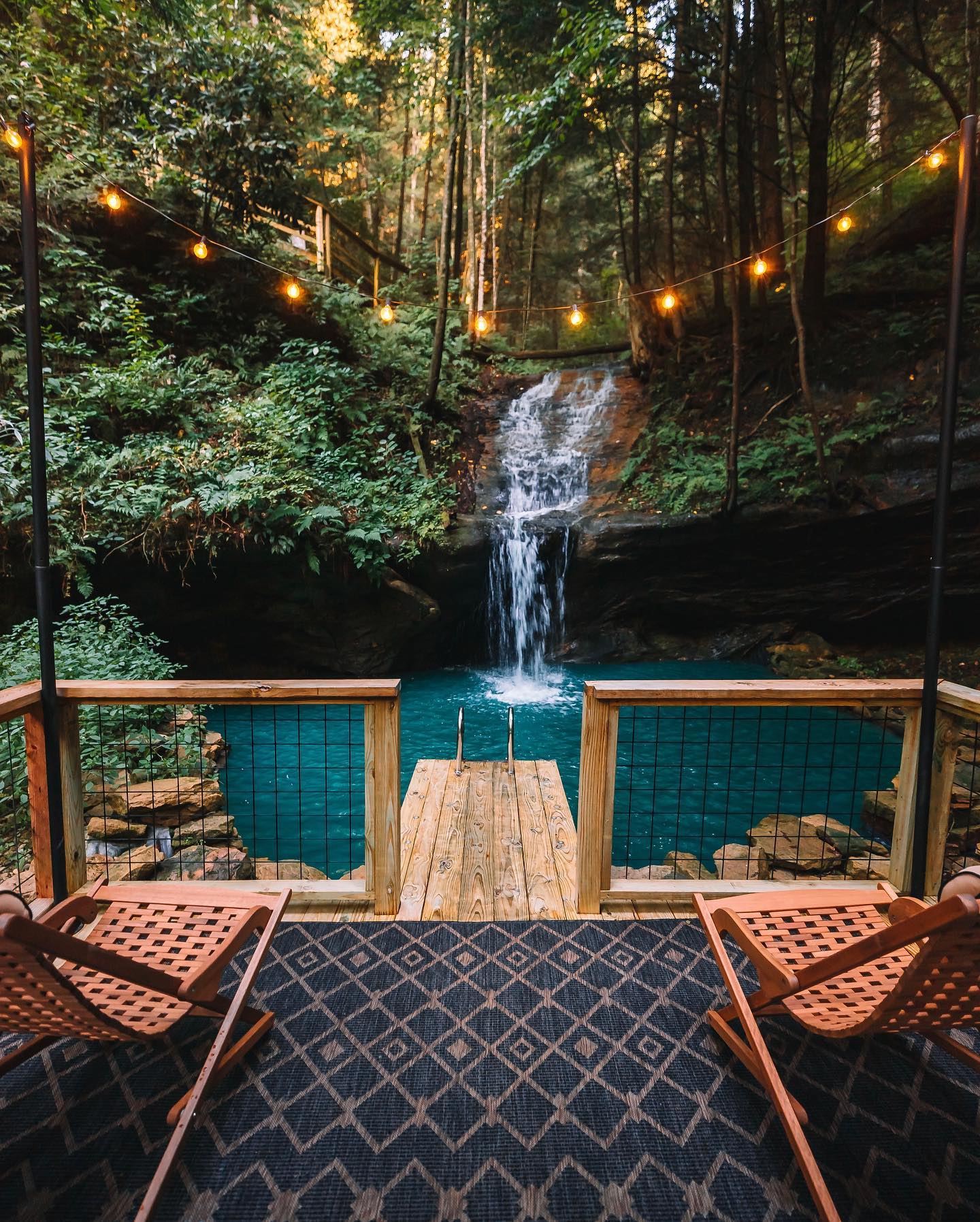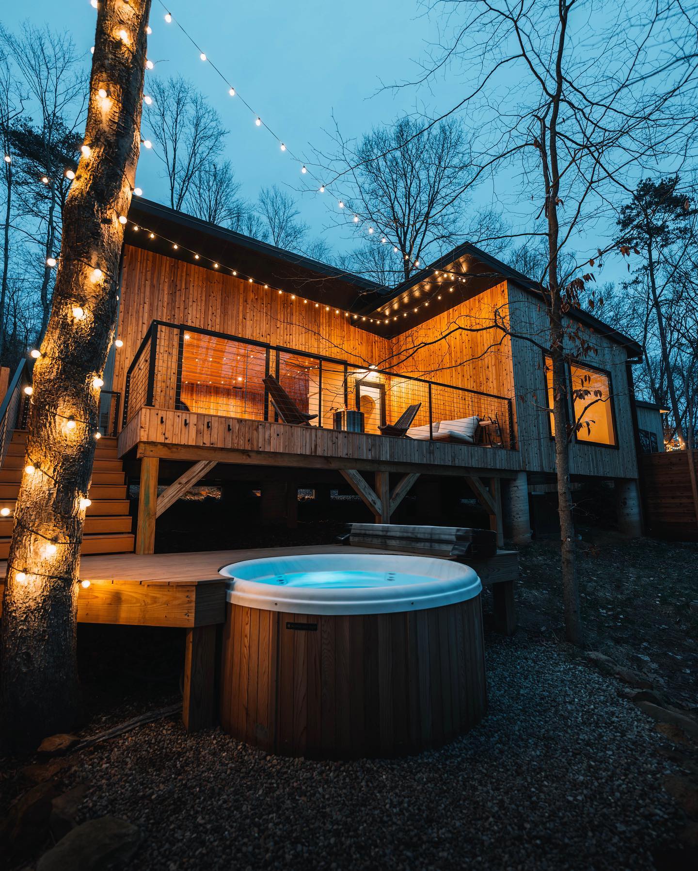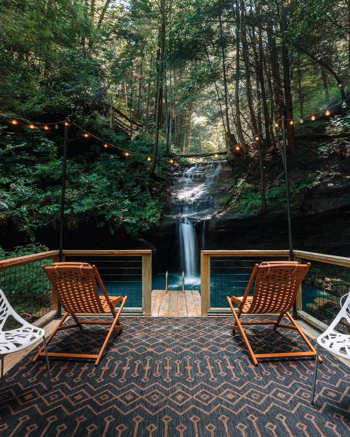 From the grandeur of Cantwell Lodge to the intimate charm of our 2-bedroom bungalows, Cliff House Getaway provides an unforgettable escape amidst Hocking Hills' natural wonders. Cliff House Getaway invites you to immerse yourself in the natural splendor of Hocking Hills with two distinct accommodations: the historic Cantwell Lodge and our newly introduced 2-bedroom bungalows. Cantwell Lodge, ideal for larger gatherings, sleeps up to 18 guests and offers exclusive features such as a private waterfall and swimming hole, ensuring a memorable group retreat. For a more intimate experience, our cedar-clad 2-bedroom bungalows present the perfect woodland escape, with large picture windows, private decks, and hot tubs overlooking the serene forest. Adjacent to the captivating Sandstone Falls, these bungalows offer guests a unique blend of rustic ambiance and modern comfort.