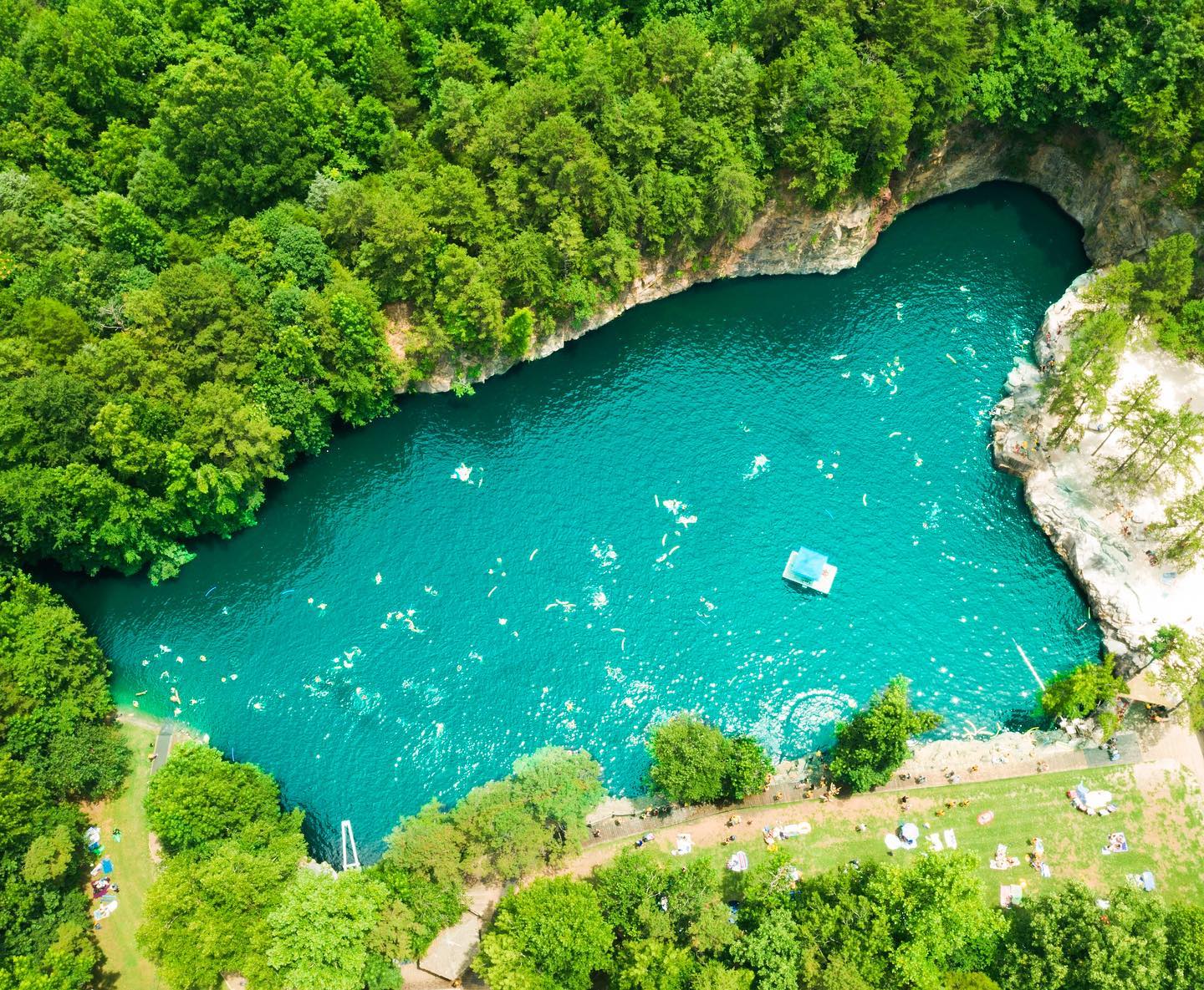 Escape the summer heat by plunging into the cool, crystal-clear waters of Carrigan Farms, a natural quarry turned swimmer's paradise.