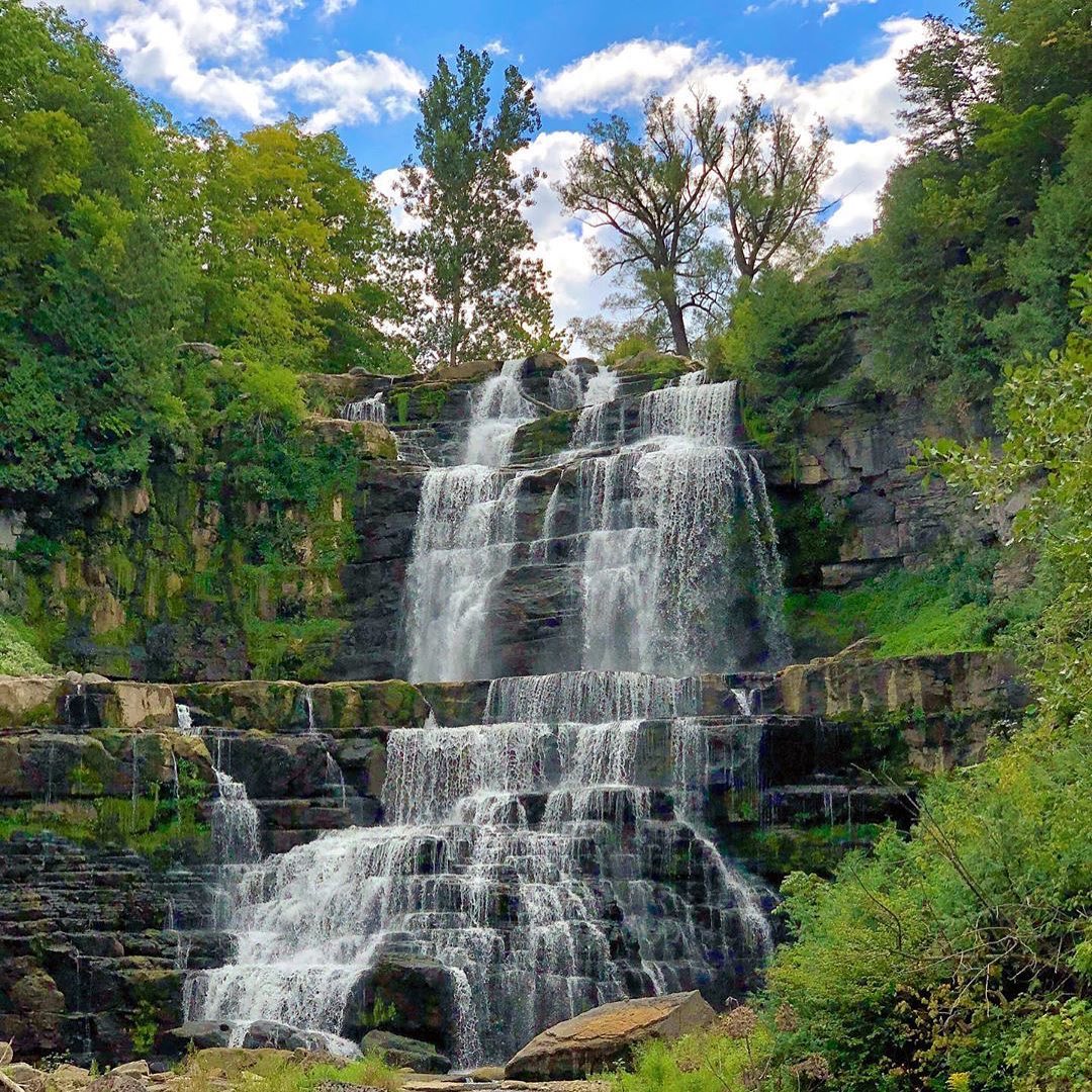Chittenango Falls, located southeast of Syracuse, New York, presents a majestic 167-foot tall waterfall that is not only a treat for the eyes but also easily accessible. This natural wonder is situated just off NY-13, near the bridge that passes over the river, making it almost effortless to reach. The park offers a brief but scenic 0.15-mile round-trip hike that includes some stairs, leading directly to excellent views of the waterfall. While enjoying the serene environment, visitors are urged to adhere to signs protecting sensitive areas to ensure the preservation of endangered plants.