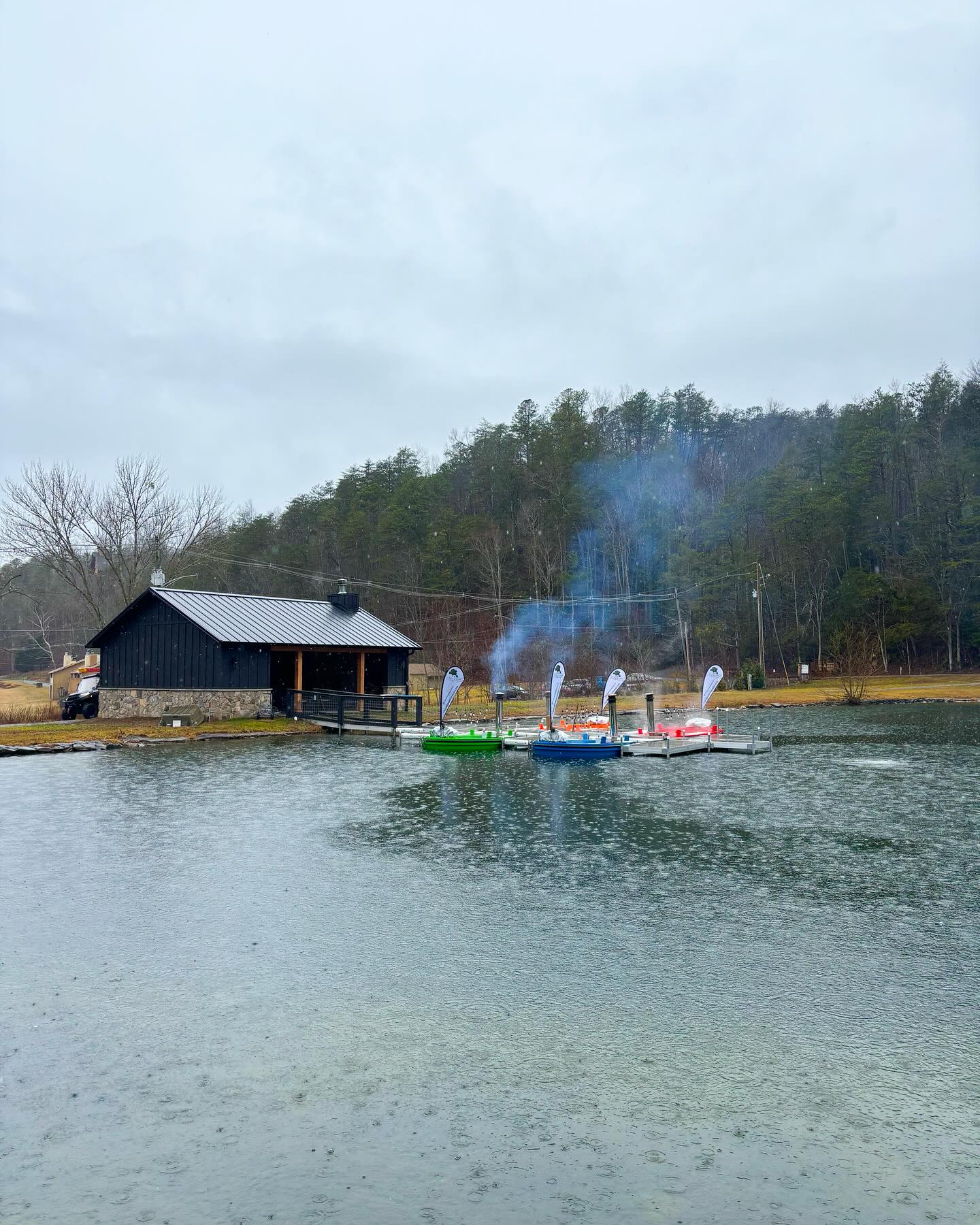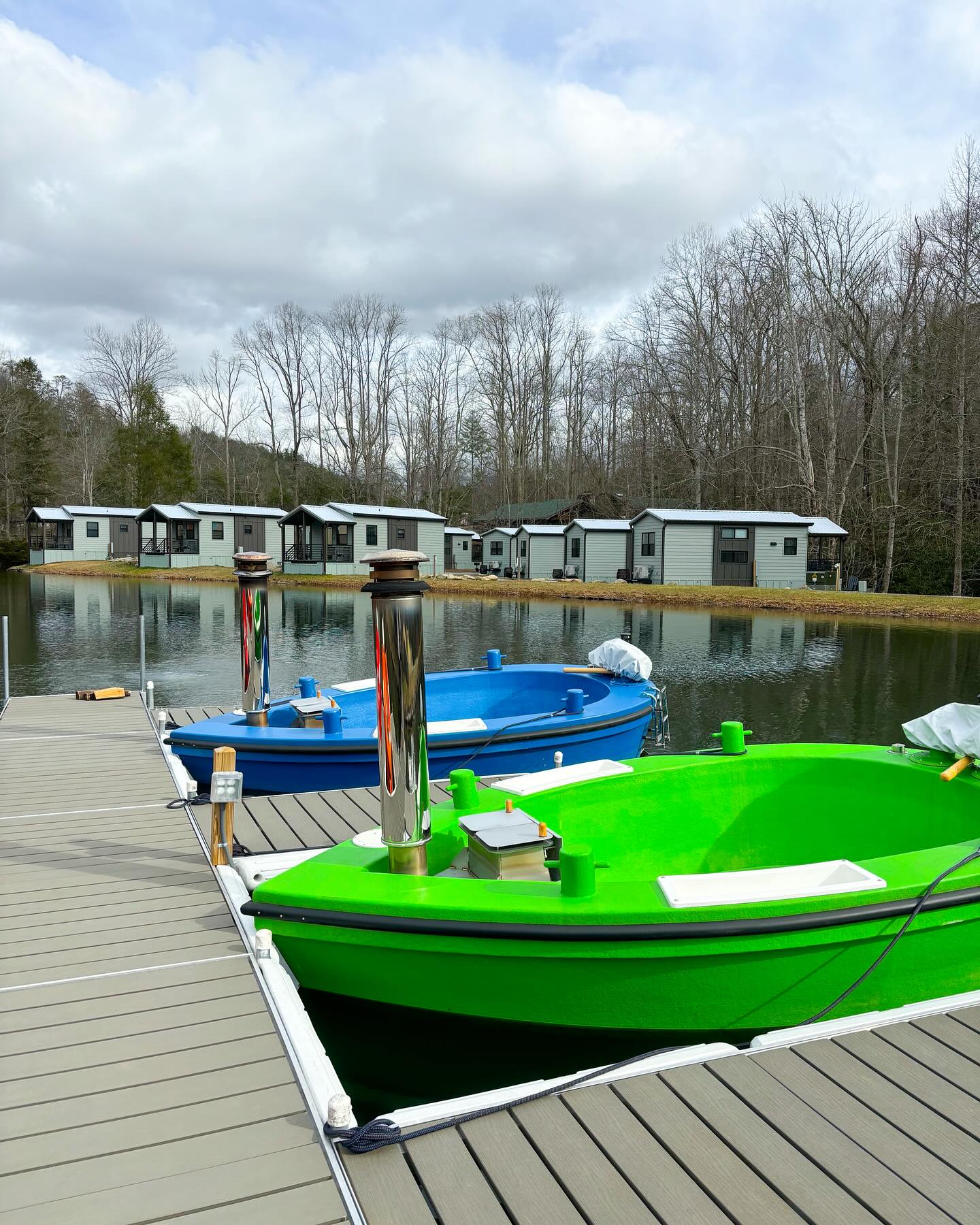 Escape to the tranquility of the Smokies with our exclusive hot tub boat rental, featuring a wood-fired tub for a luxurious soak while navigating a private lake.