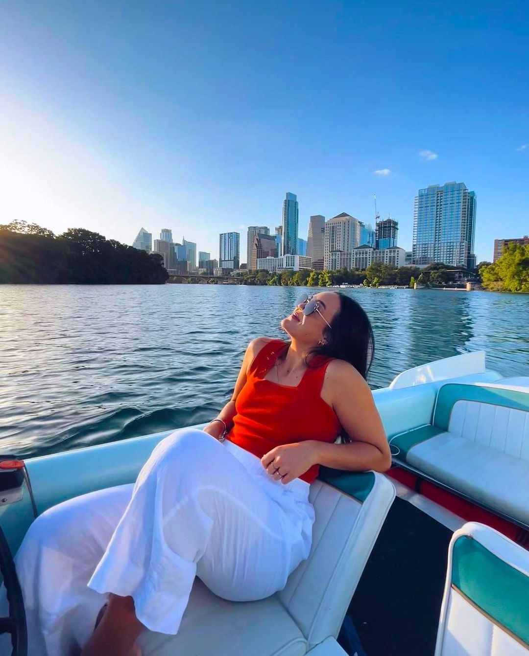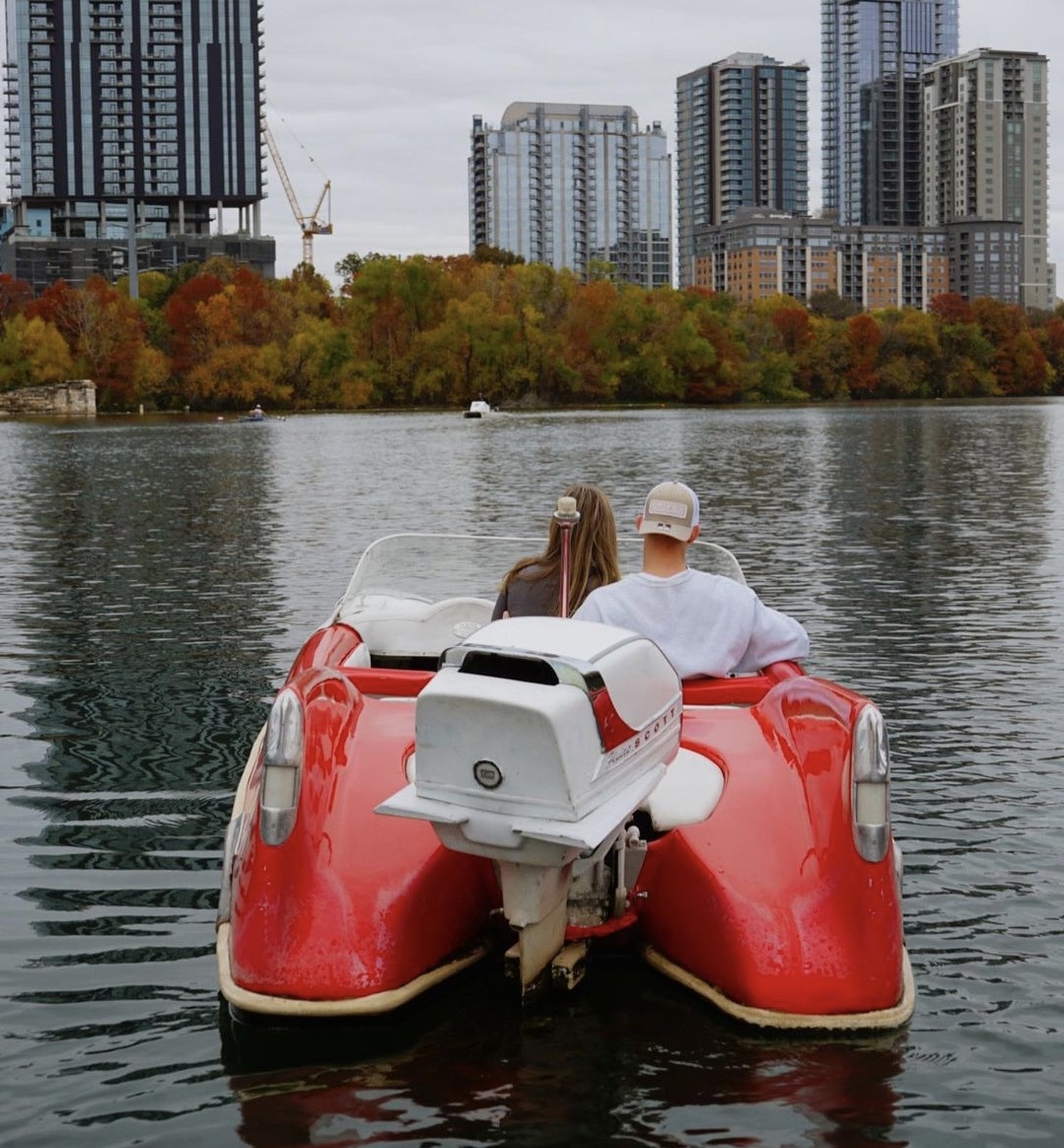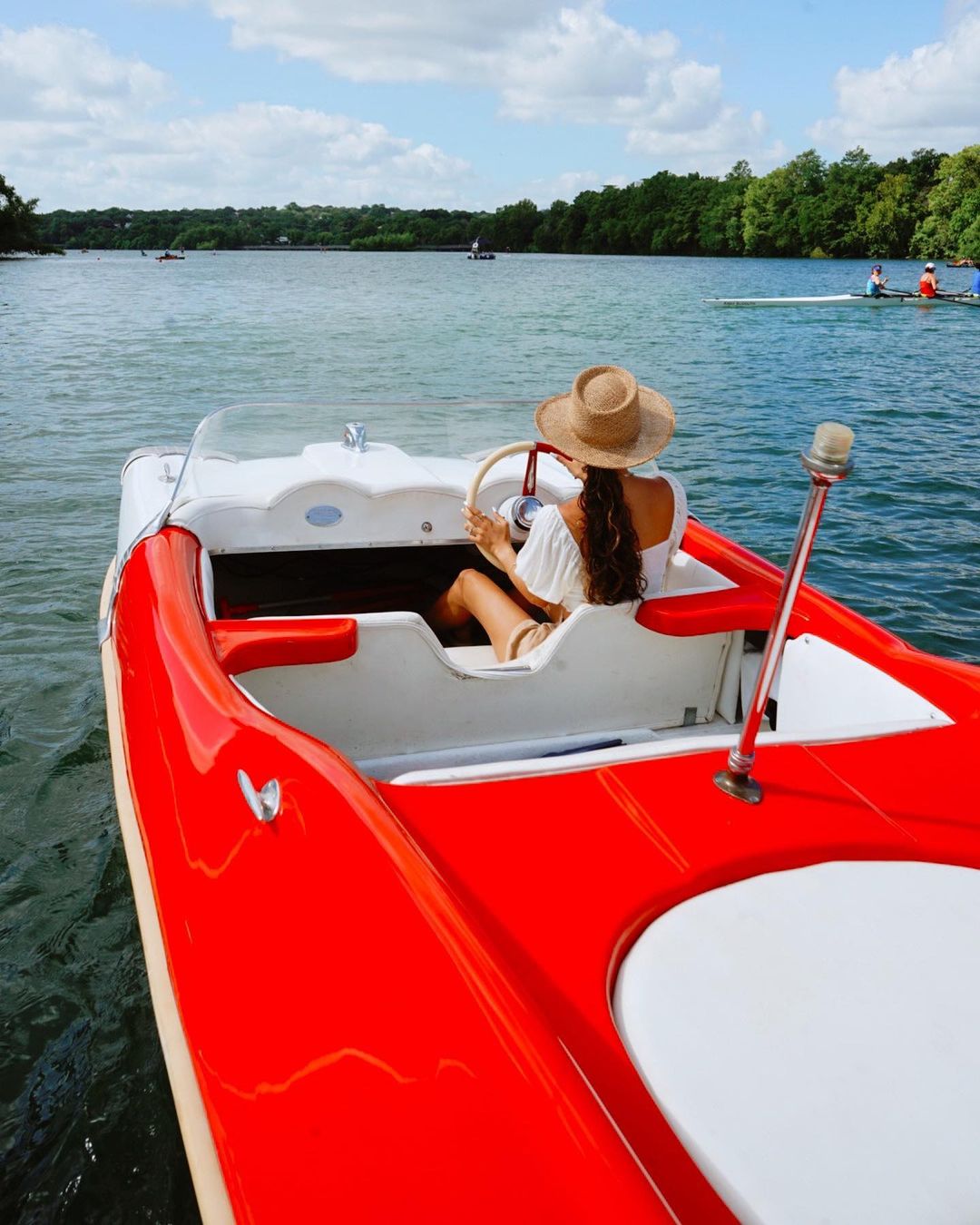 Get 1.5-hour boat ride on Lady Bird Lake in Austin, Texas. Choose from a selection of beautifully restored vintage fiberglass boats, each with a retro design, unique colors, and eco-friendly electric motors. Cruise at a leisurely pace of 4.5 mph, taking in the stunning views of the Austin skyline, Congress Bridge, and the tranquil natural surroundings.