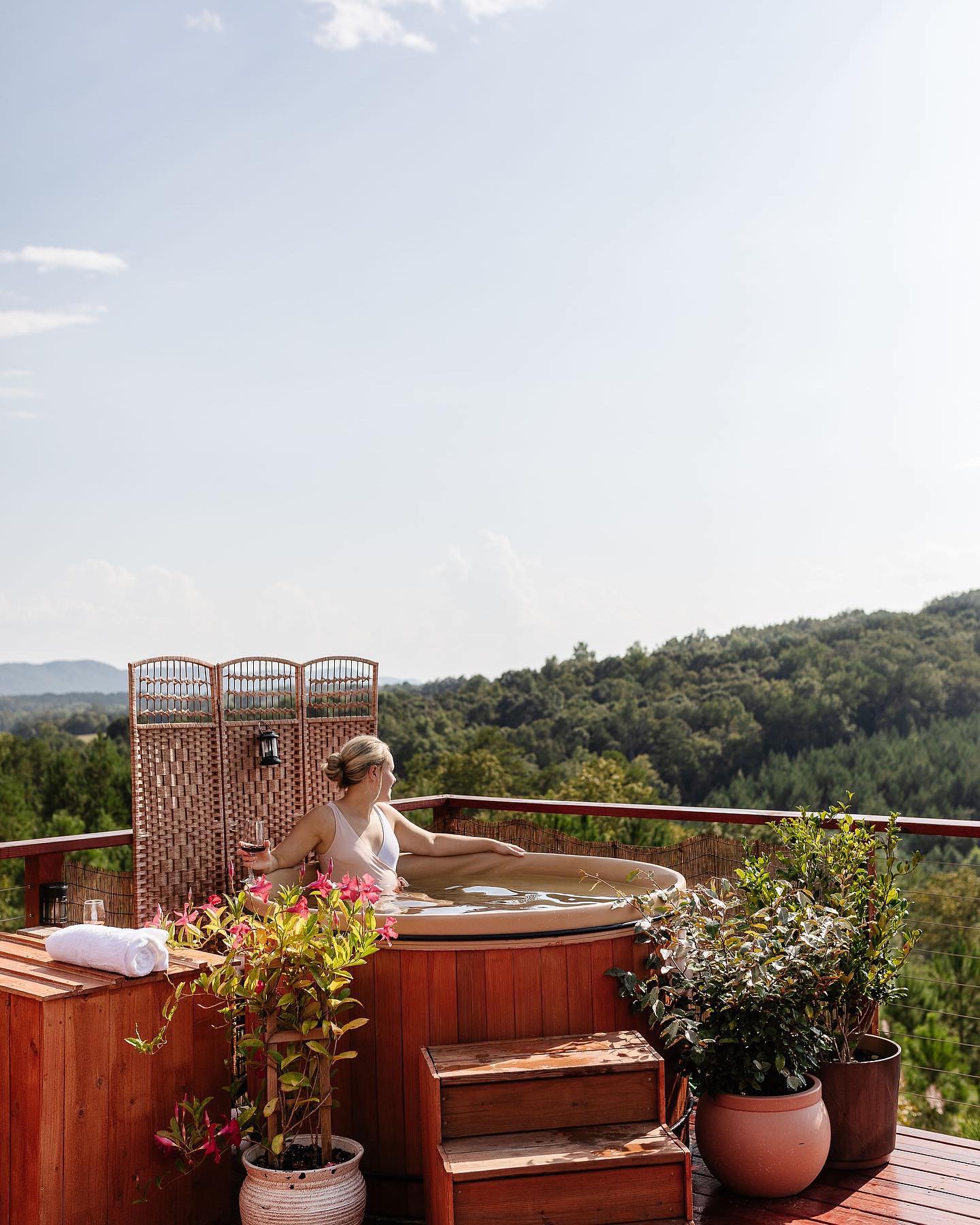 - As dusk falls, gather around the fire pit or soak in the hot tub under the stars.