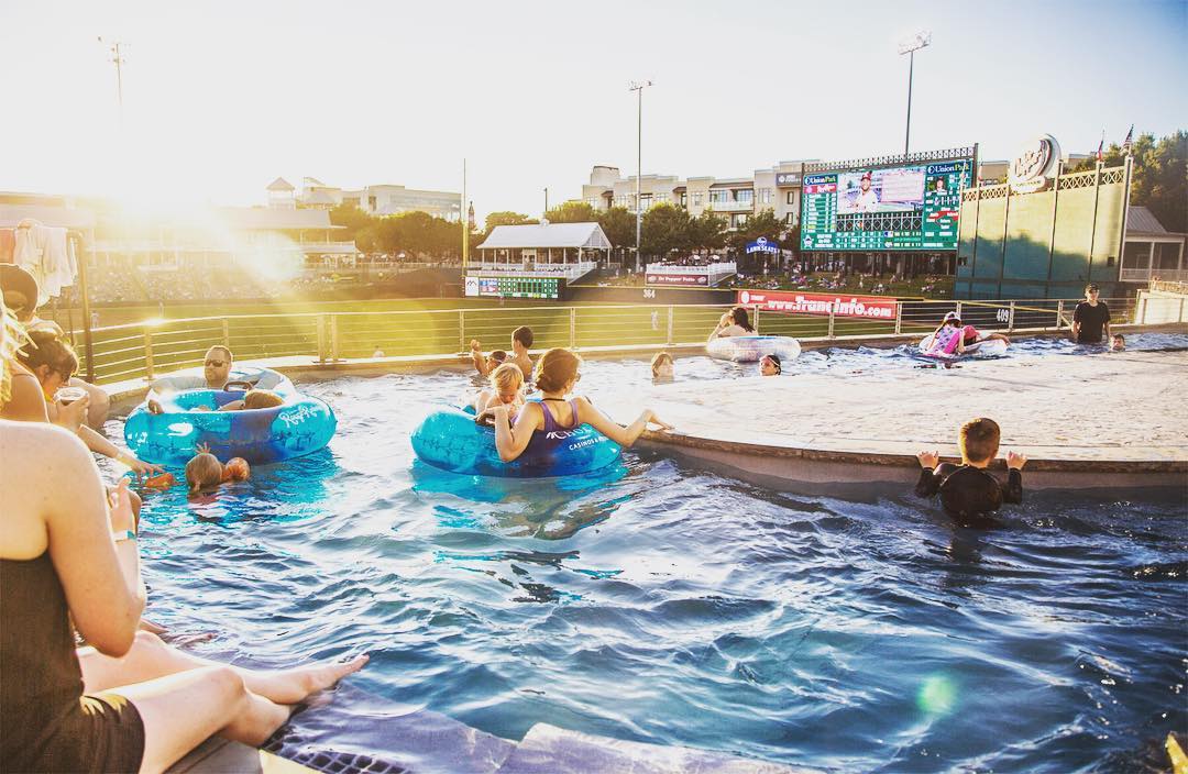 Beat the summer heat with a splash and a game, watching the Frisco RoughRiders from a lazy river, featuring special Thursday and Sunday events.