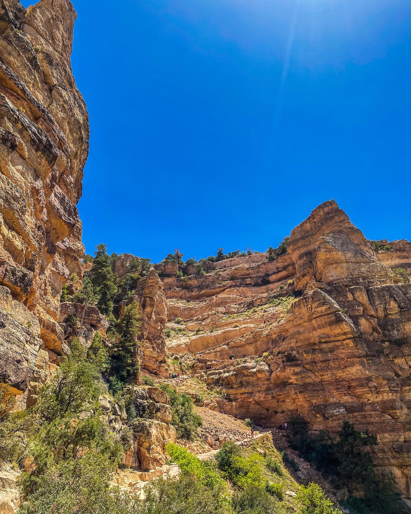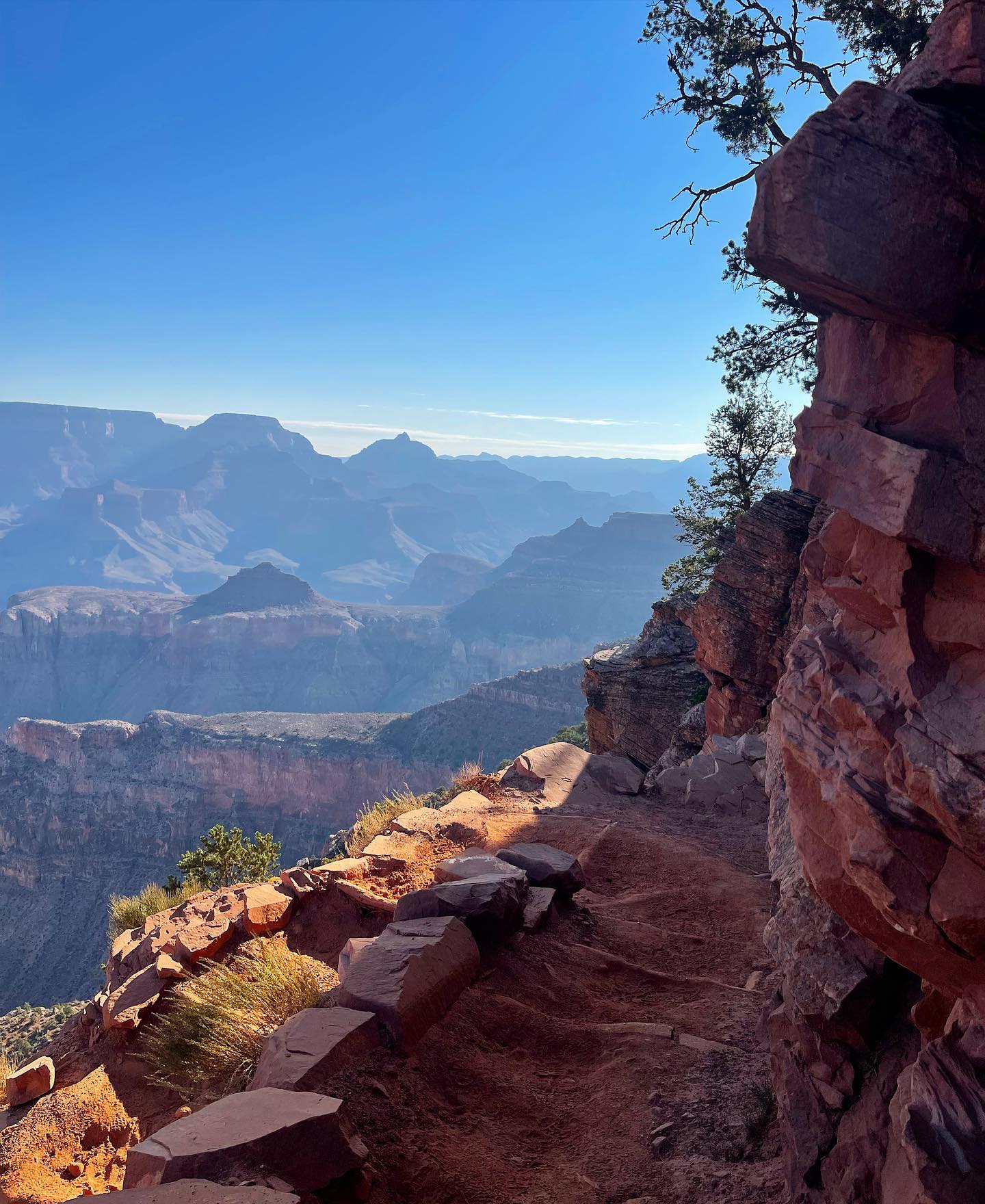 - Begin at the South Kaibab Trailhead, accessed via a park shuttle bus.
