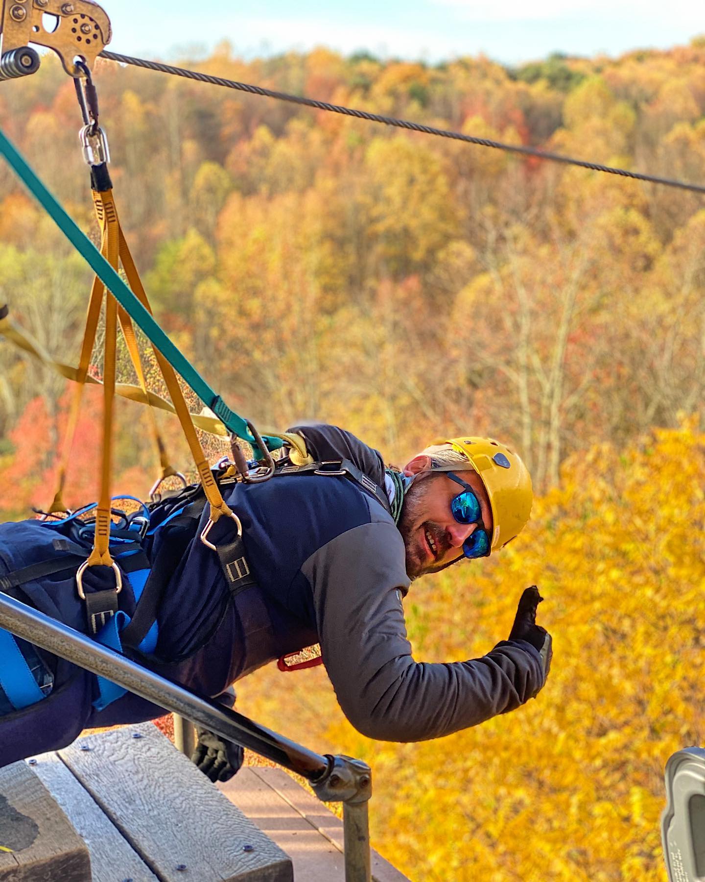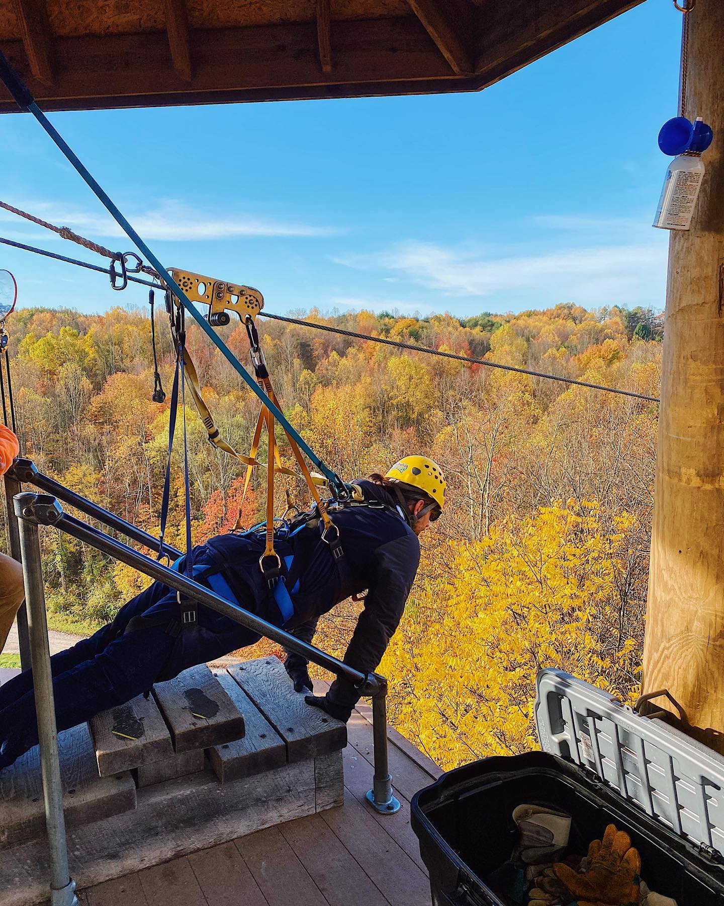 Experience the thrill of flying through the treetops in Hocking Hills, Ohio, on an unforgettable zipline adventure for the whole family.