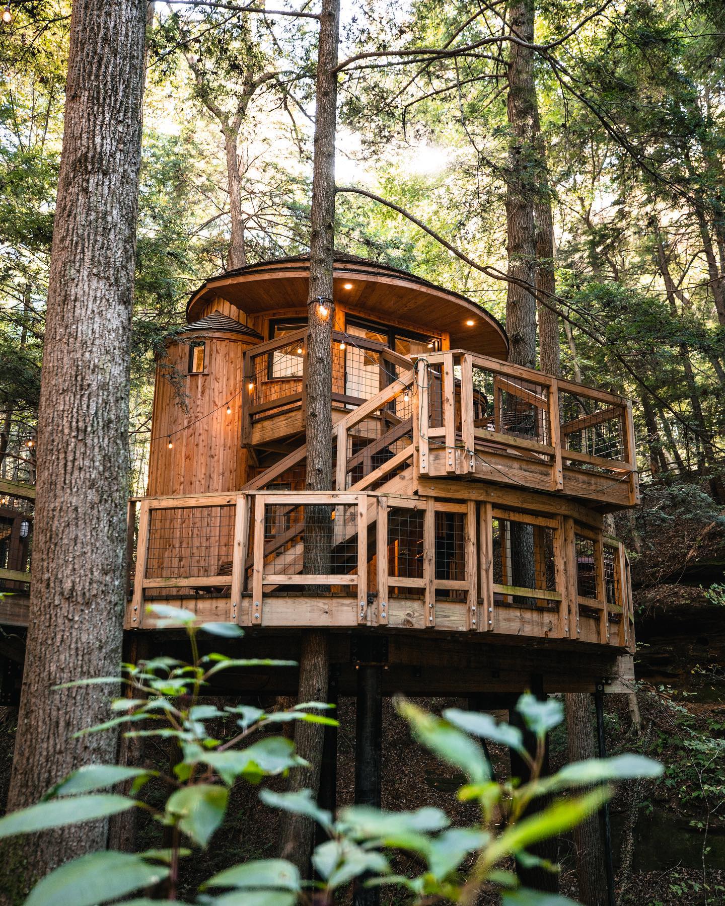 Elevate your glamping experience with Hocking Hills Treehouse Cabins, offering four unique, luxury stays amidst Ohio's serene woodlands. Immerse yourself in nature without sacrificing comfort at Hocking Hills Treehouse Cabins, where luxury meets the great outdoors. Nestled in the enchanting woodlands of Hocking Hills, Ohio, our treehouse cabins redefine glamping by combining the rustic charm of nature with modern luxury. Choose from four distinct treehouses—Hemlock, White Oak, Beech, and Maple—each offering a unique experience tailored to your needs, whether it's a romantic getaway or a family adventure. Revel in breathtaking views, unwind in wood-fired hot tubs, and enjoy the comfort of full amenities, all while being elevated among the treetops.