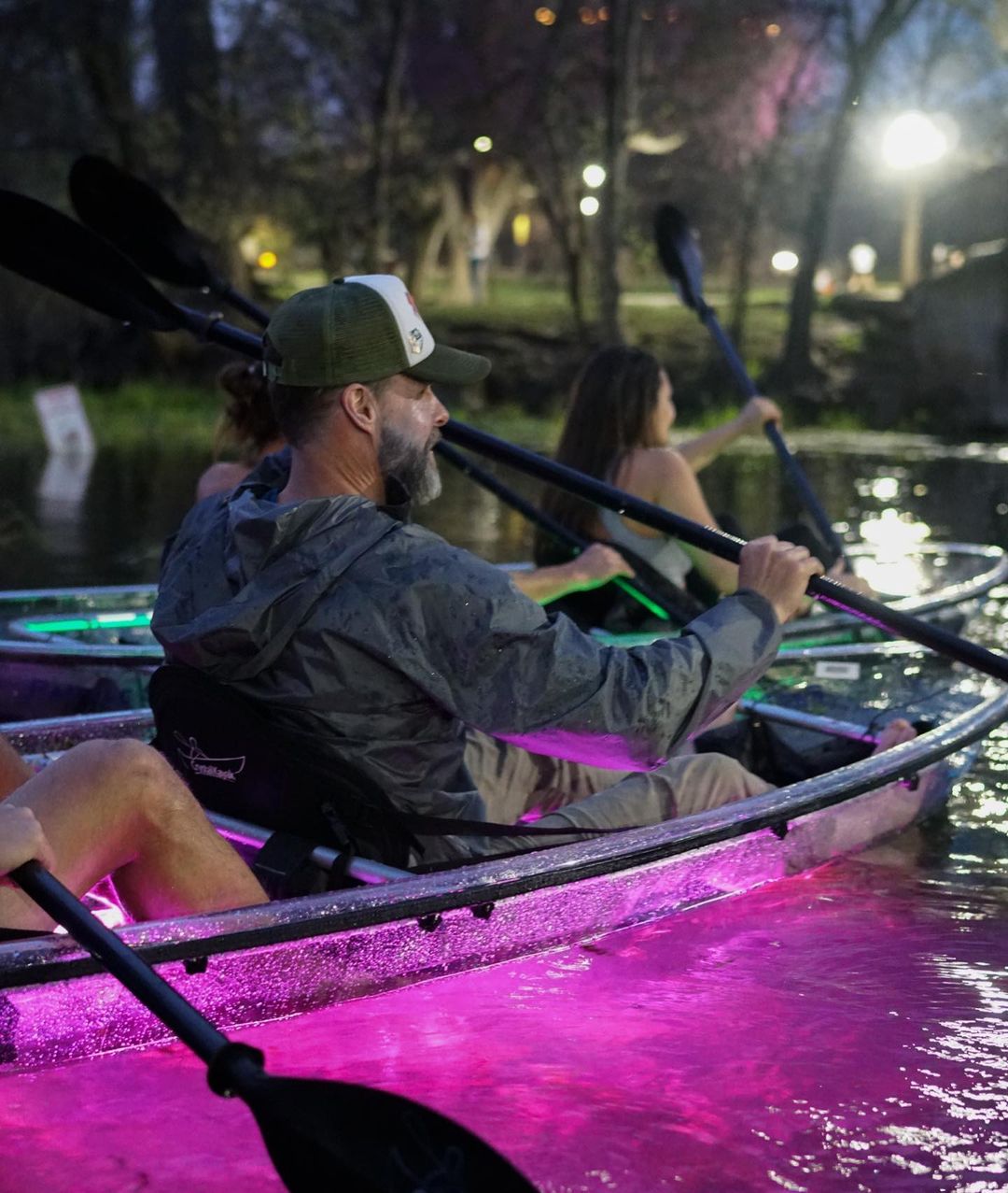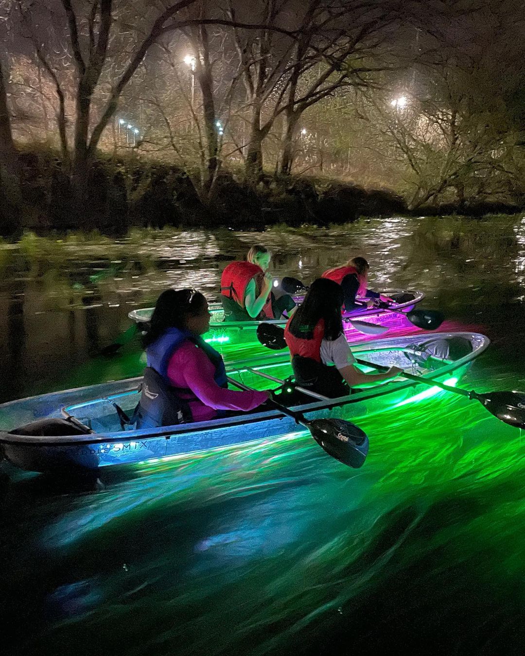 Paddle through the night in San Marcos with glowing kayaks and paddle boards, creating unforgettable memories!