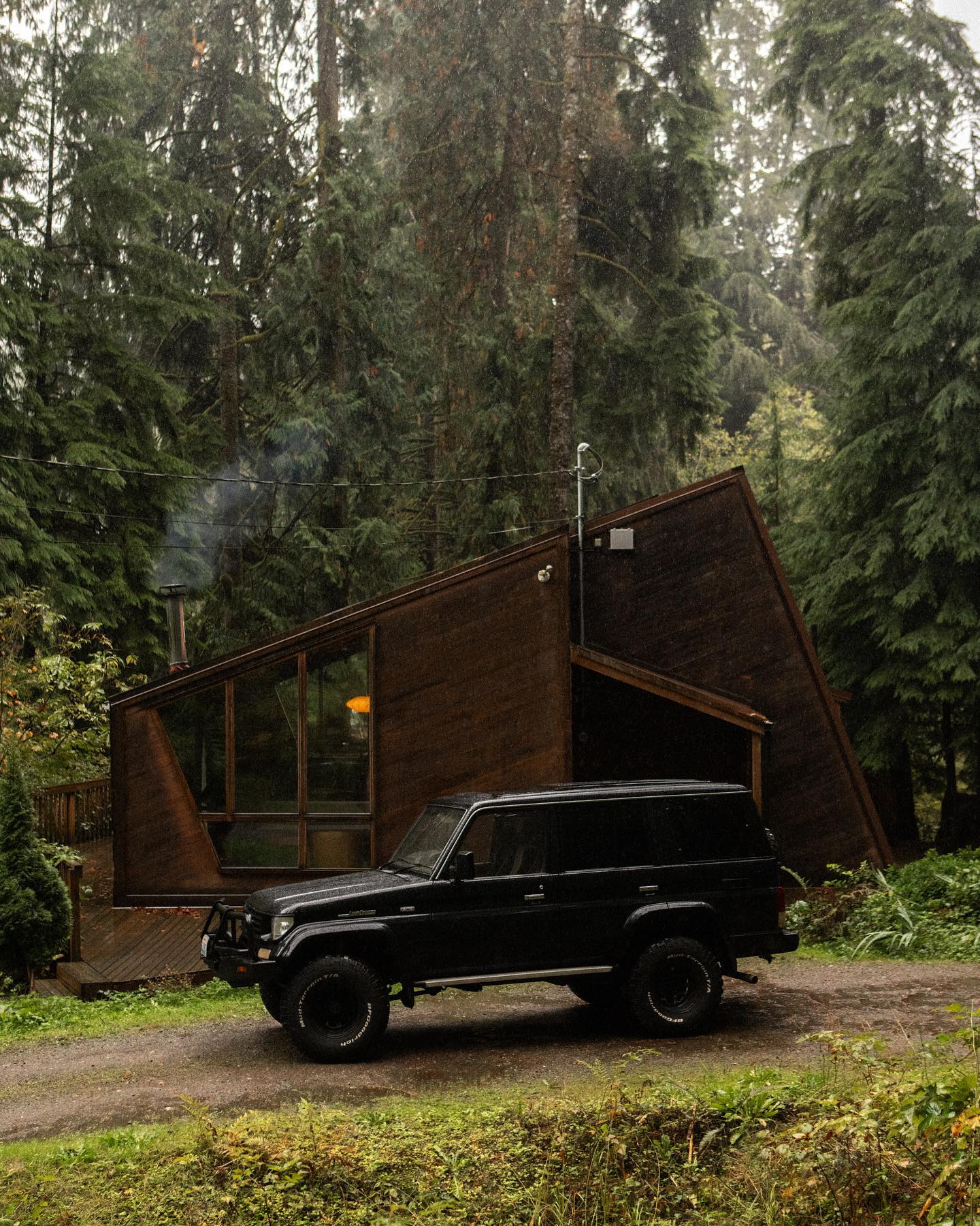 Escape to the tranquil Canyon Creek Cabin, an hour from Seattle in the heart of the Cascade Mountains. This unique A-frame cabin, originally a 1970s fishing retreat, now offers a modern, cozy getaway with wood-clad walls, exposed beams, and breathtaking geometric windows overlooking the river. With two bedrooms accommodating up to six guests, enjoy a spacious living area, a fireplace, a fully-equipped kitchen, and an outdoor deck with a hot tub. Explore nearby natural wonders or kayak in the challenging river right at your doorstep.