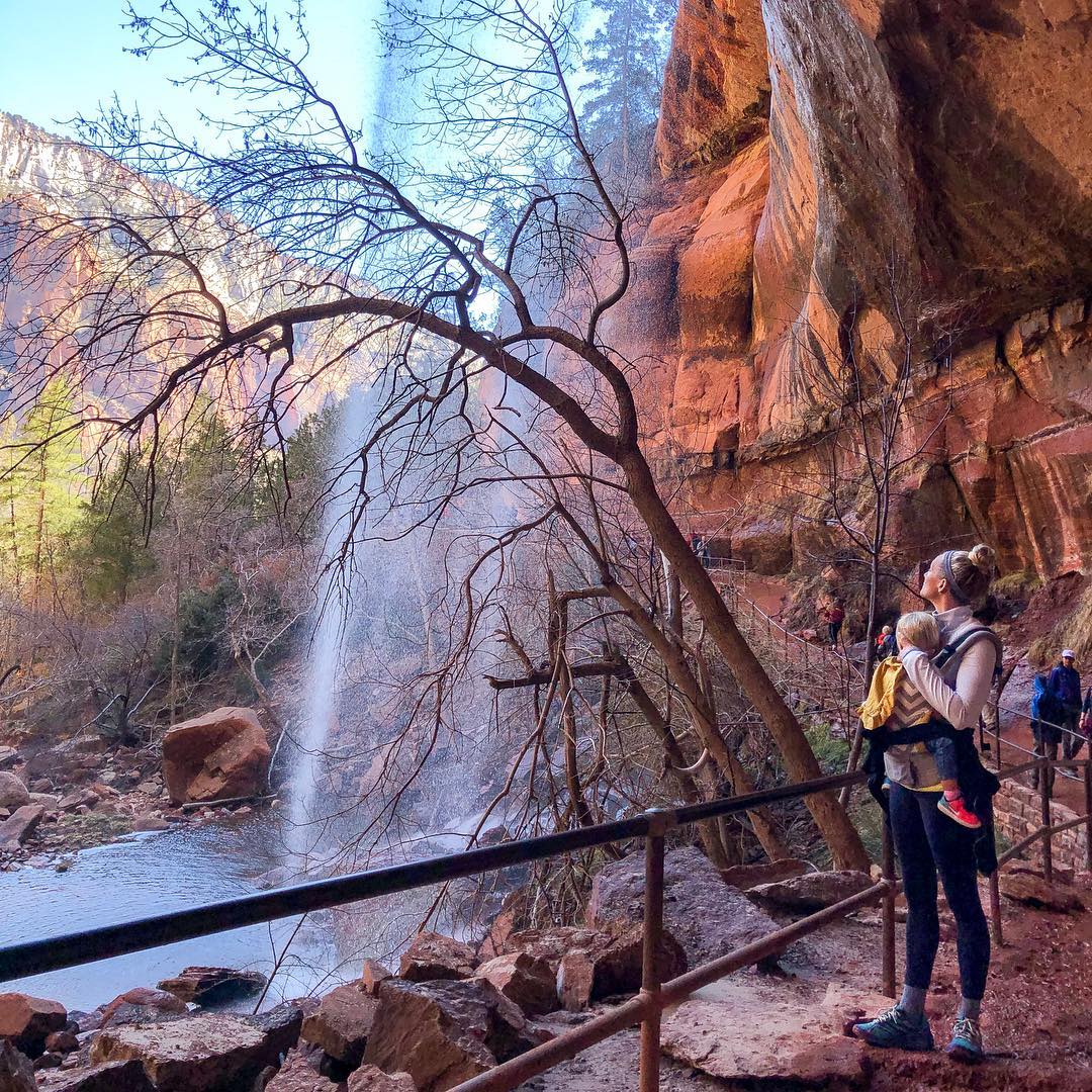 - Start at Zion Lodge or the Grotto, depending on trail closures.