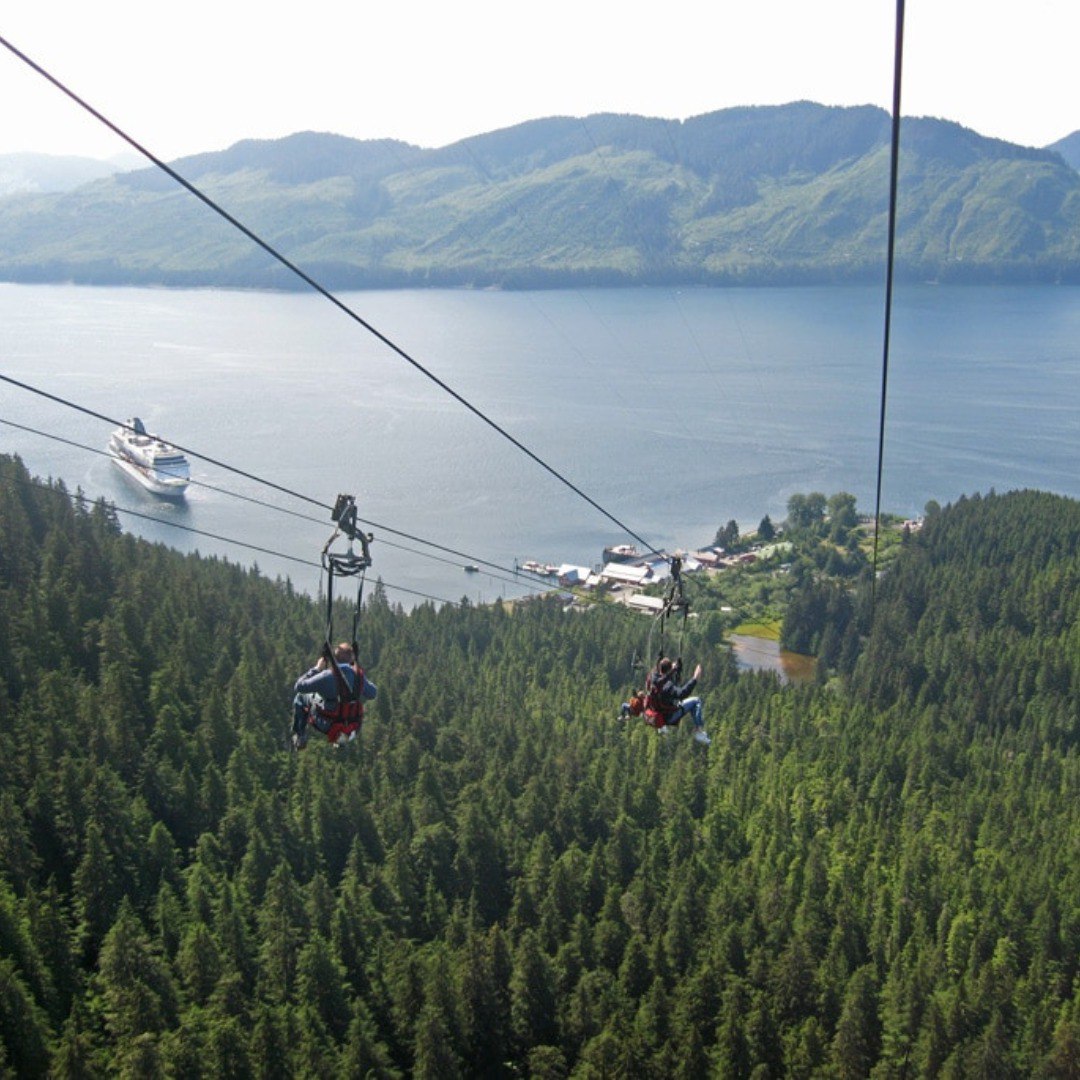 Dive into the thrill of Alaska's largest ZipRider at Icy Strait Point, where breathtaking heights and speeds combine for an unforgettable adventure.